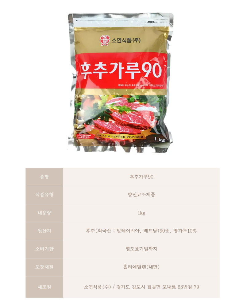 | 생산자 및 소재지 | 상품 상세페이지 참조 | 제조연월일, 소비기한 또는 품질유지기한 | 상품 상세페이지 참조 |