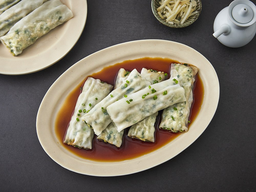 딤섬 부추창펀, 창펀소스로 구성되어 있습니다.