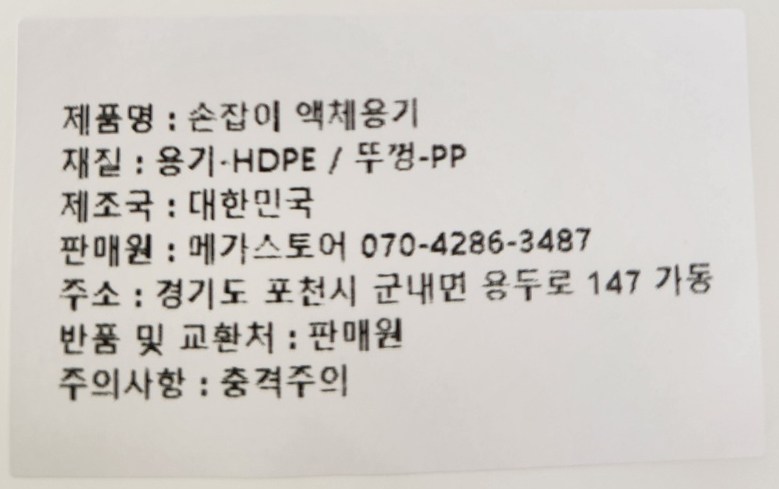 | 품명 및 모델명 | 메가스토어 세제 리필 소분용기 세제통 1리터 3p+라벨지 | 인증/허가 사항 | 해당없음 |