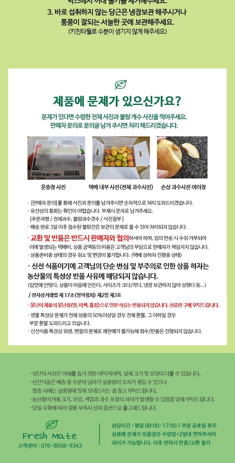 다만, 판매자의 제시사항이 관계법령보다 소비자에게 유리한 경우에는 판매자 제시사항이 적용됩니다.