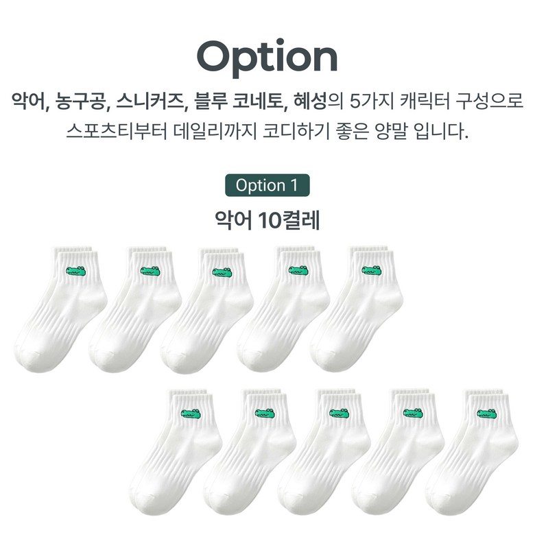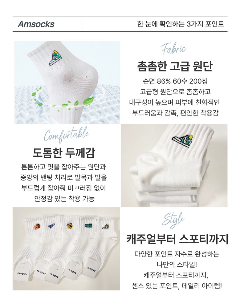 | 종류 | 남성용 순면 중목 캐릭터 도톰한 스포츠 캐릭터 데일리 양말 | 소재 | 순면 86% 폴리에스터 8% 스판덱스 6% |