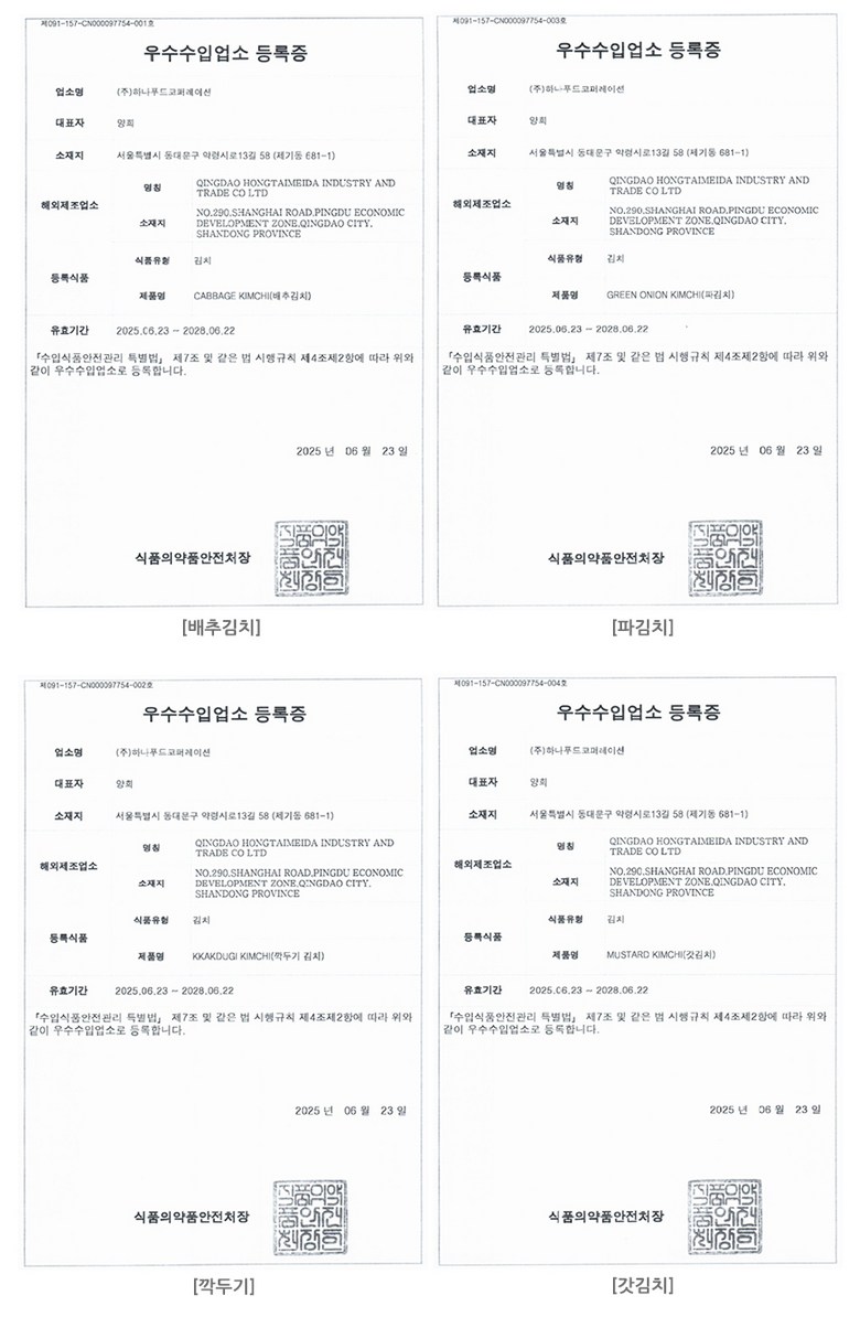 상호/대표자 | (주)하나푸드코퍼레이션 / 양희 | 사업장 소재지 | 서울특별시 동대문구 약령시로13길 58 (제기동) - |