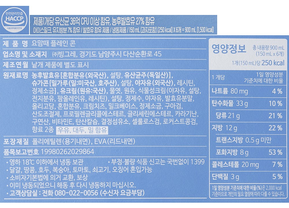 | 제품명 | 컨텐츠 참조 | 식품의 유형 | 아이스밀크 |