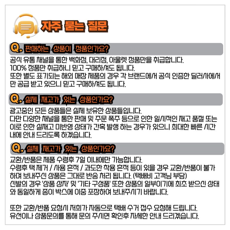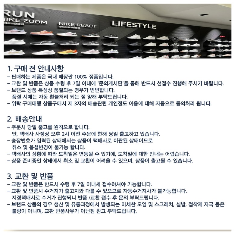 - ㆍ모니터 해상도의 차이로 인해 색상이나 이미지가 실제와 달라, 고객이 단순 변심으로 교환/반품을 무료로 요청하는 경우