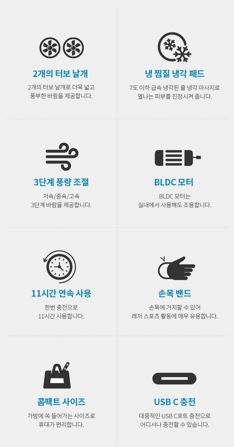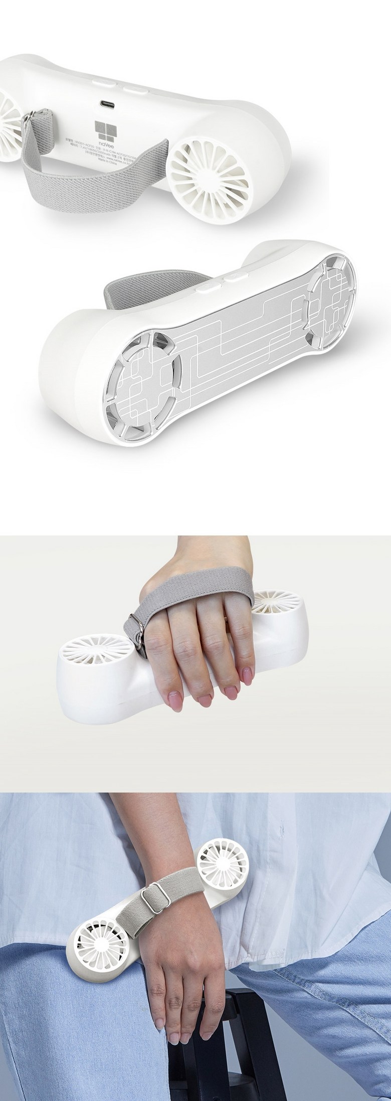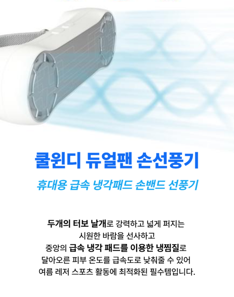쿨윈디 초강력 듀얼팬 손밴드 휴대용 손선풍기 급속 냉각패드 미니 핸디 손풍기, 2개