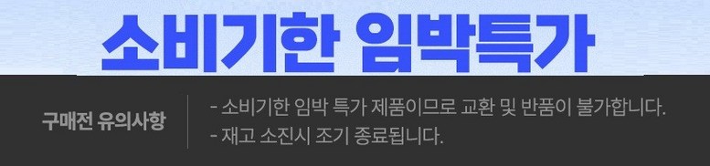| 소비기한 및 보관방법 | 상품 상세페이지 참조 | 포장단위별 내용물의 용량(중량), 수량 | 상품 상세페이지 참조 |