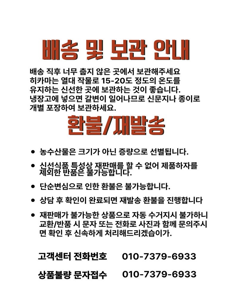 - ㆍ모니터 해상도의 차이로 인해 색상이나 이미지가 실제와 달라, 고객이 단순 변심으로 교환/반품을 무료로 요청하는 경우