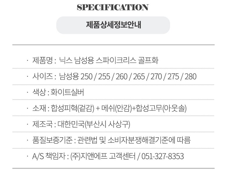 | 제조국 | 상품 상세페이지 참조 | 취급시 주의사항 | 상품 상세페이지 참조 |