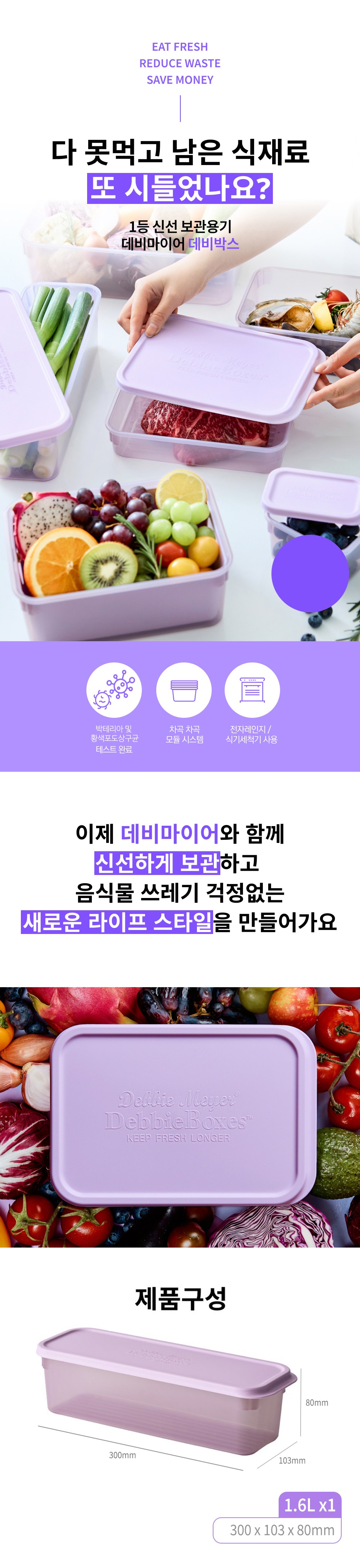 | 품명 및 모델명 | 데비마이어 데비박스 유연 밀폐 모듈 신선용기 퍼플, 대파 보관용 1.6L | 재질 | 컨텐츠 참조 |