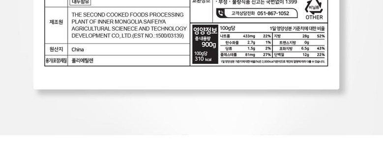 | 제품명 | 상품 상세페이지 참조 | 식품의 유형 | 상품 상세페이지 참조 |