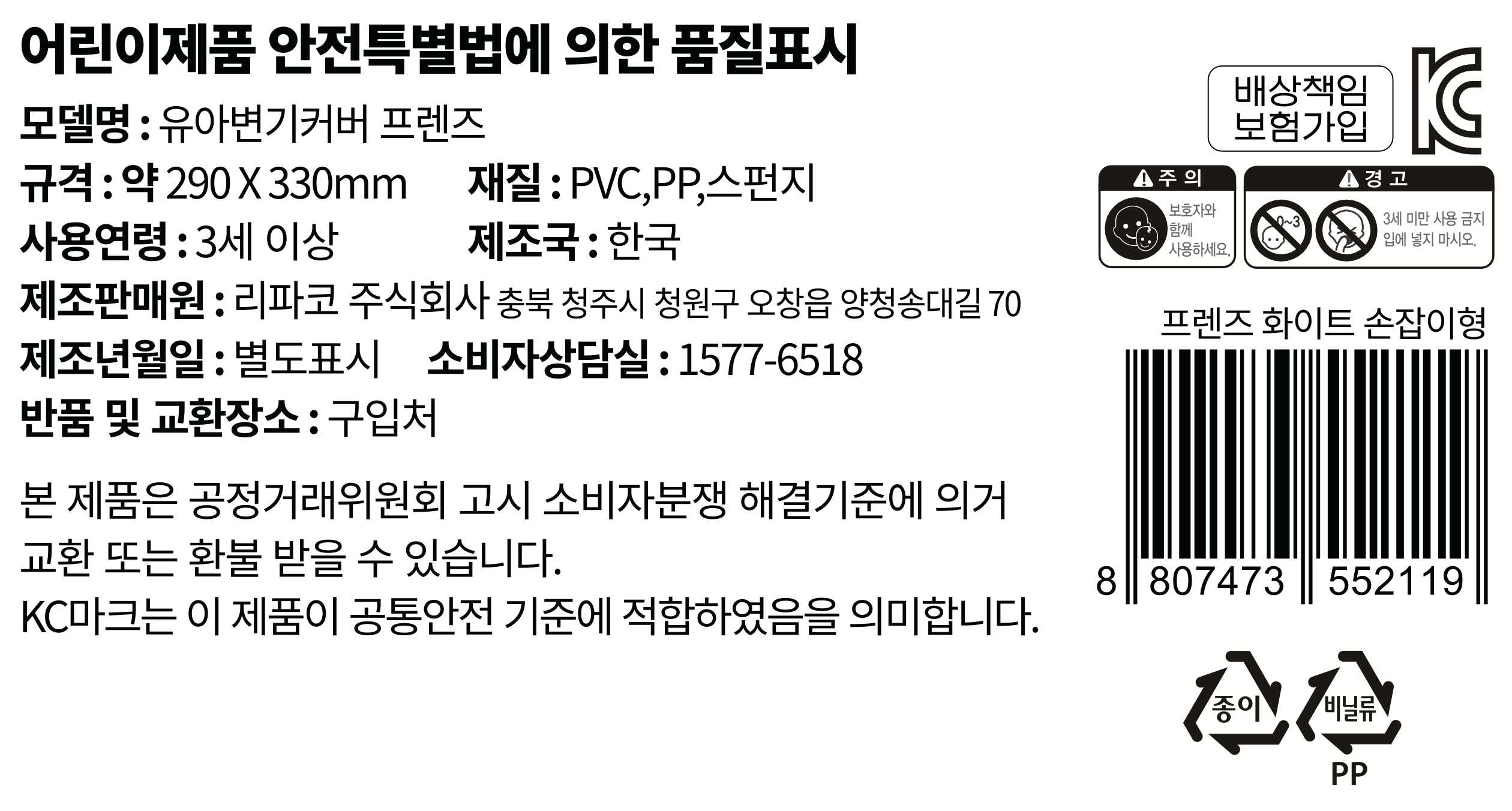 | 품명 및 모델명 | 아가드 유아 변기커버 손잡이형 | KC 인증정보 | 유 / KC마크 |