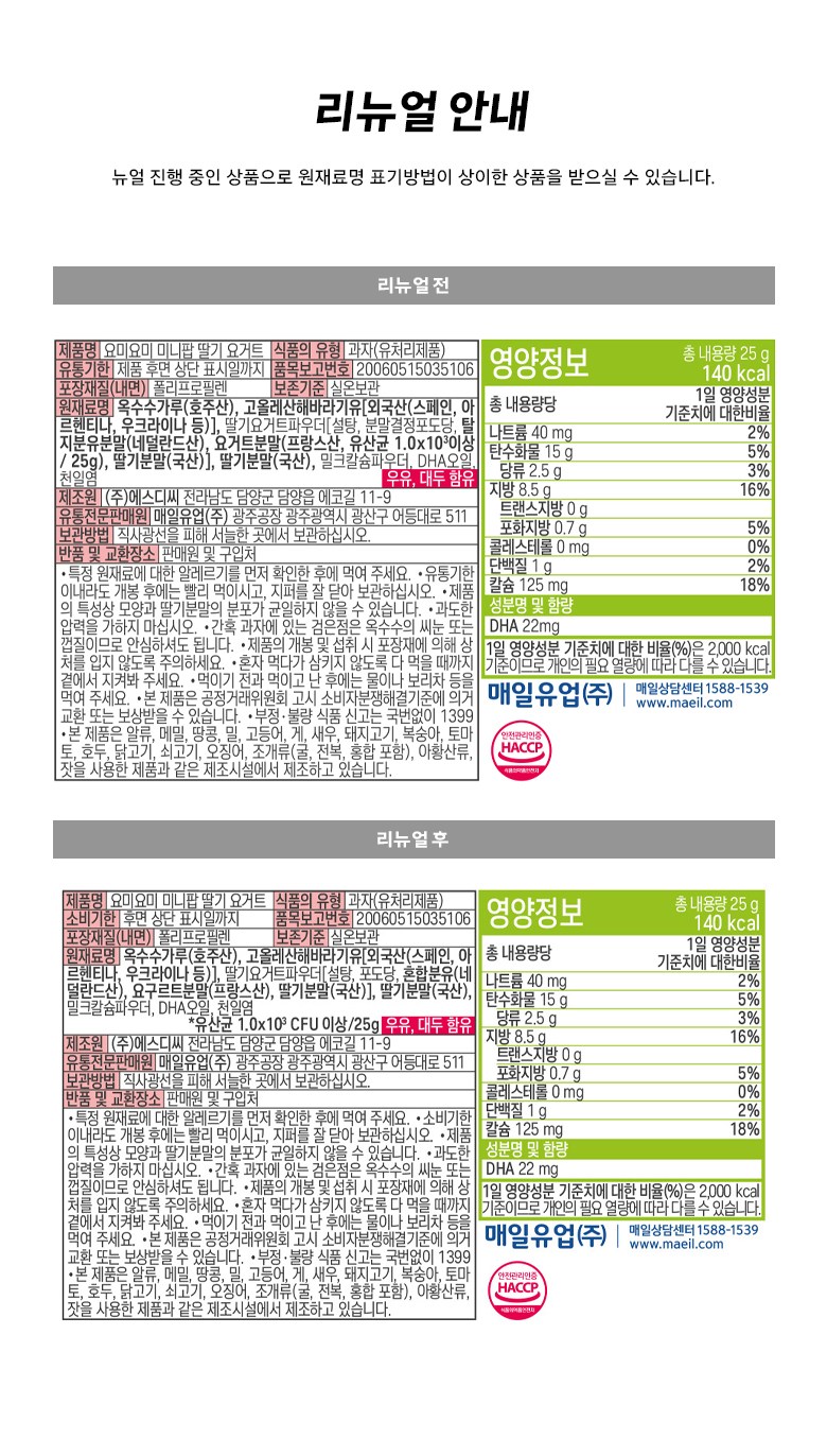 | 포장단위별 내용물의 용량(중량), 수량 | 25g*6개 | 원재료명 및 함량 | 리뉴얼 전 : 컨텐츠 참조 / 리뉴얼 후 : 컨텐츠 참조 |