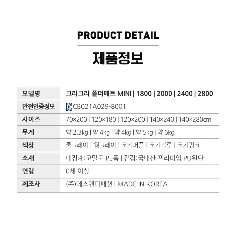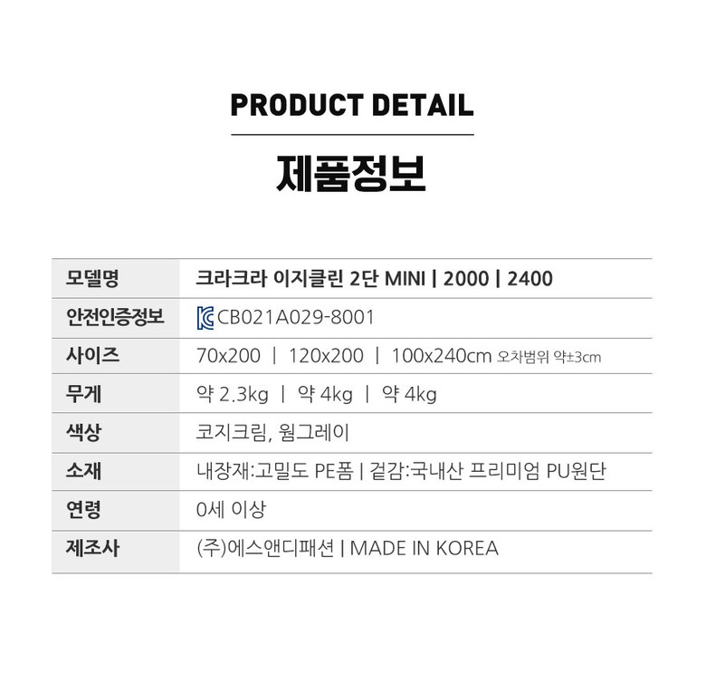 | 품명 및 모델명 | 상품 상세페이지 참조 | KC 인증정보 | 상품 상세페이지 참조 |