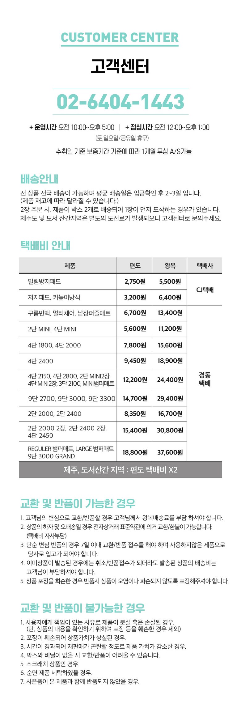 - ㆍ모니터 해상도의 차이로 인해 색상이나 이미지가 실제와 달라, 고객이 단순 변심으로 교환/반품을 무료로 요청하는 경우
