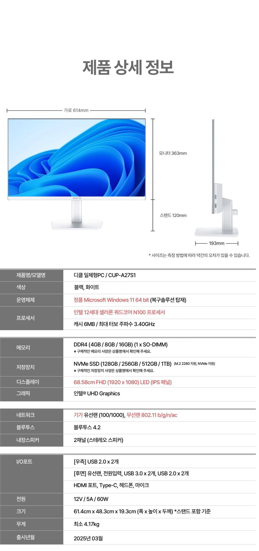 - CPU 모델 번호: 셀러론-N100