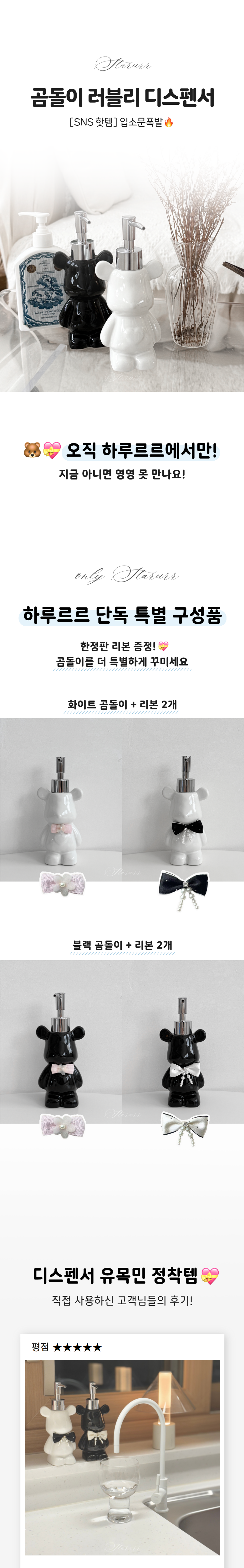 색상 × 수량: 블랙 곰돌이+리본 2개 × 2세트