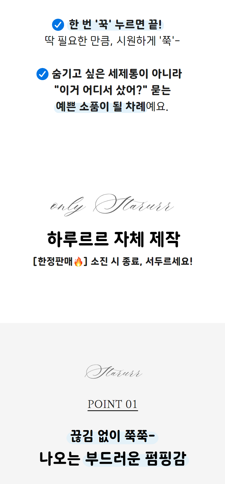 | 배송방법 | 순차배송 | 배송비 | 무료배송 - 도서산간 지역 배송불가 |
