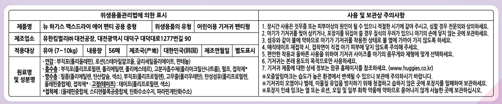 | 교환/반품 신청 기준일 | ㆍ단순변심에 의한 로켓배송 상품의 교환/반품은 제품 수령 후 30일 이내까지, 교환/반품 제한사항에 해당하지 않는 경우에만 가능 (교환/반품 비용 고객부담) ㆍ상품의 내용이 표시·광고의 내용과 다른 경우에는 상품을 수령한 날부터 3개월 이내, 그 사실을 안 날 또는 알 수 있었던 날부터 |