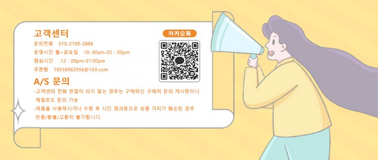 - ㆍ모니터 해상도의 차이로 인해 색상이나 이미지가 실제와 달라, 고객이 단순 변심으로 교환/반품을 무료로 요청하는 경우