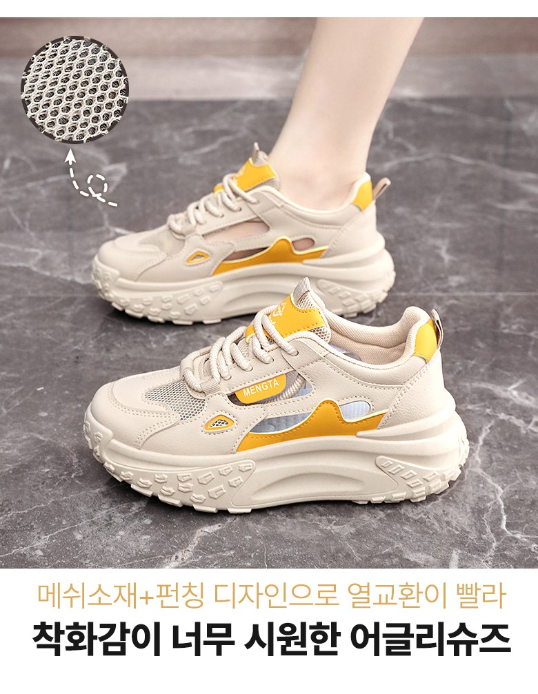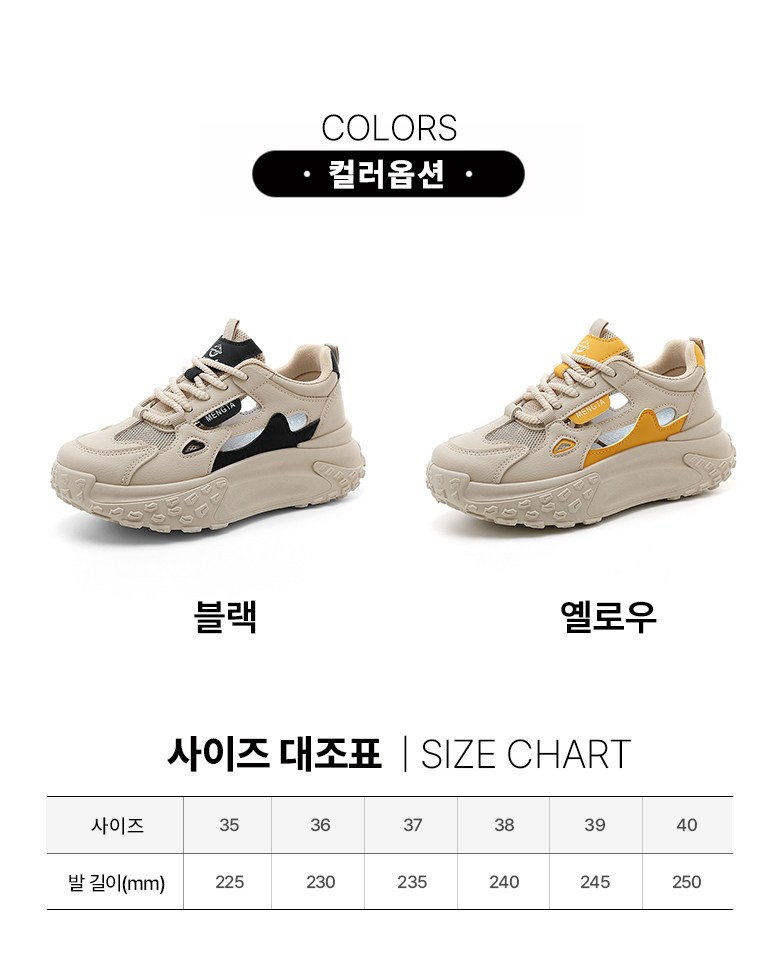 | 제품의 주소재(운동화인 경우에는 겉감,안감을 구분하여 표시) | 겉감: 메쉬소재30%이상,가죽소재 40%이상 , 안감: 폴리에스터 | 색상 | 옐로우,블랙 |