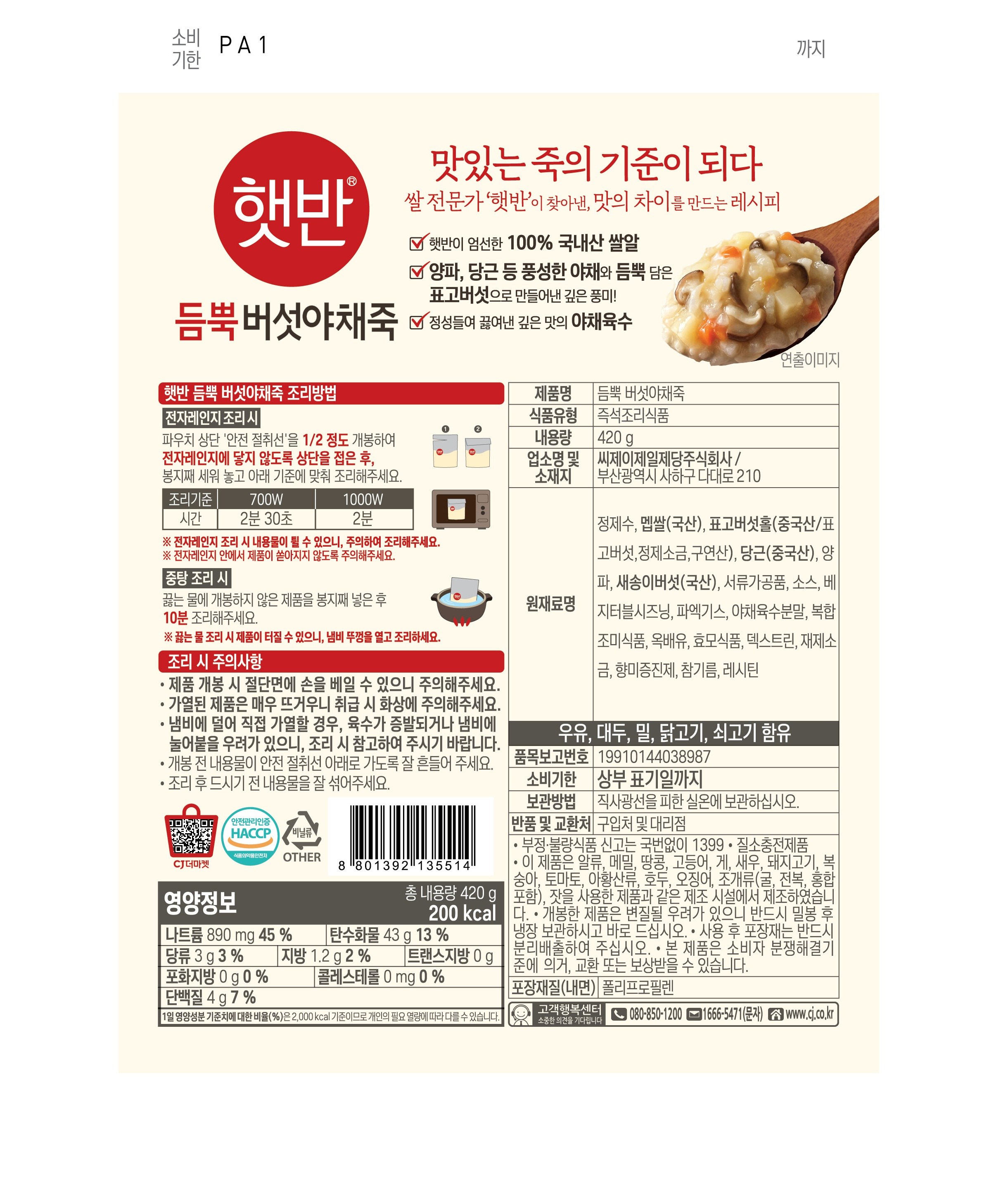 - 섭취방법: 즉석완조리식품