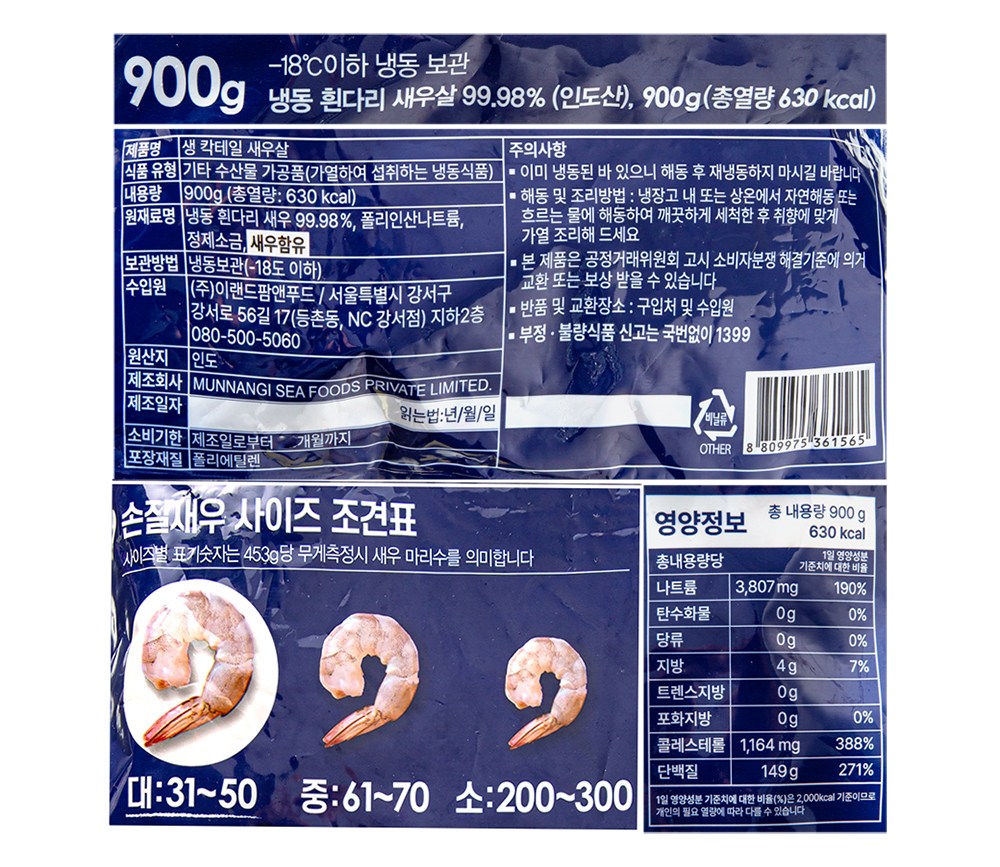 머리와 껍질을 제거한 칵테일 새우살