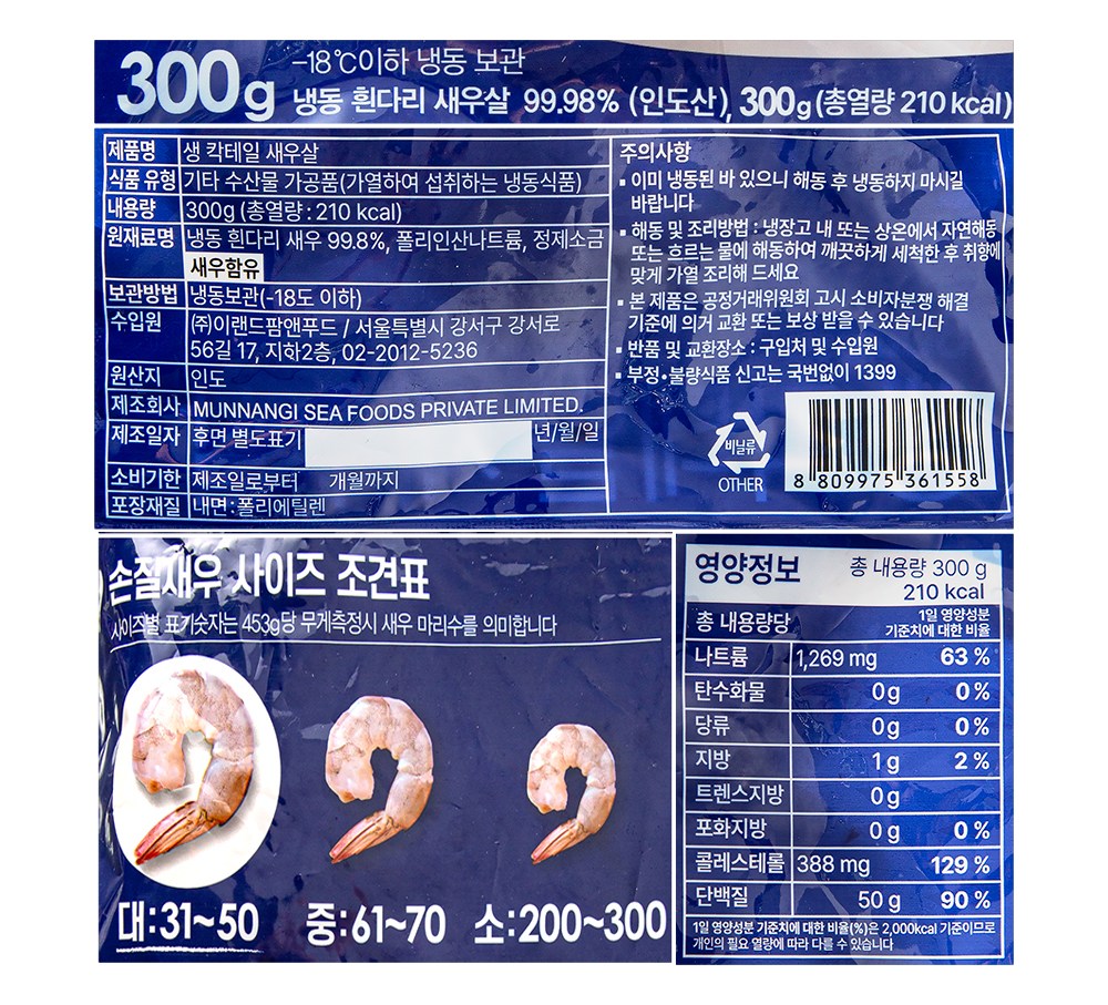 머리와 껍질을 제거한 칵테일 새우살