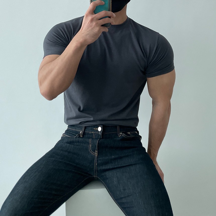 투니스 남성 스포츠 단색 라운드넥 반소매 티셔츠