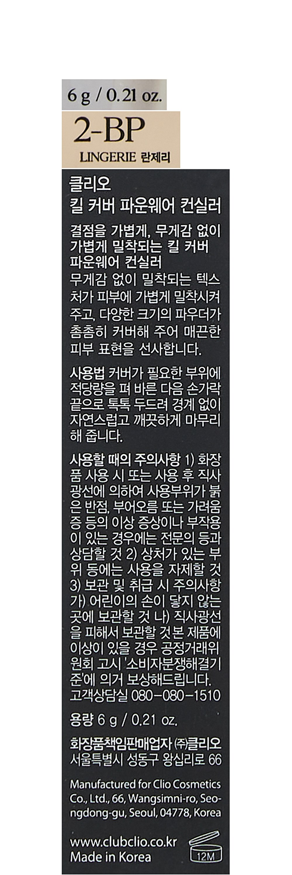 | 화장품제조업자, 화장품책임판매업자 및 맞춤형화장품판매업자 | 코스맥스 / 클리오 | 제조국 | 대한민국 |