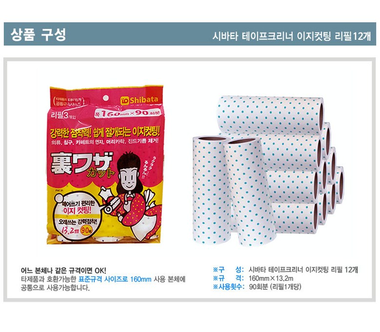 | 품명 및 모델명 | 시바타 이지컷팅 테이프크리너 리필12개구성 | 인증/허가 사항 | 해당없음 |