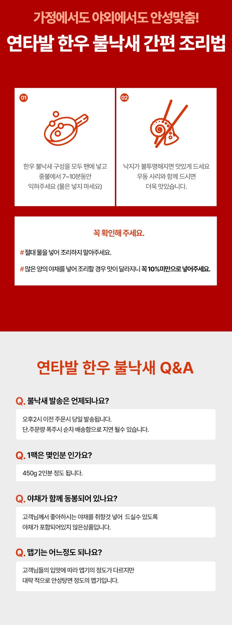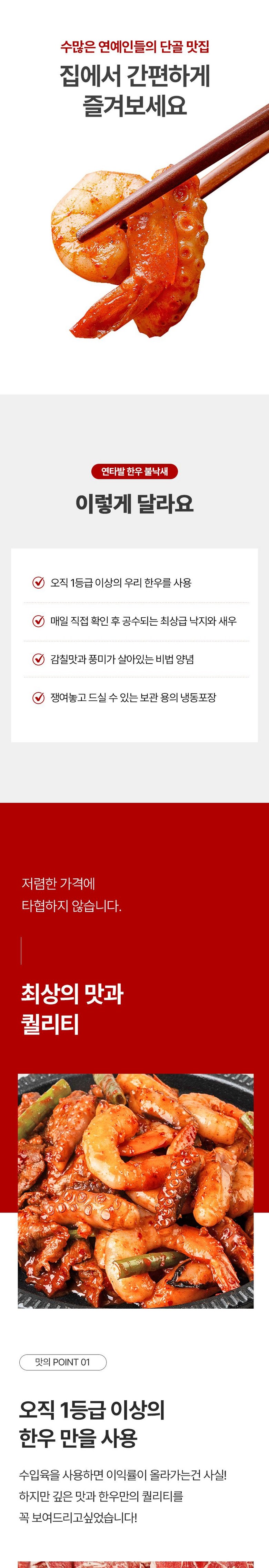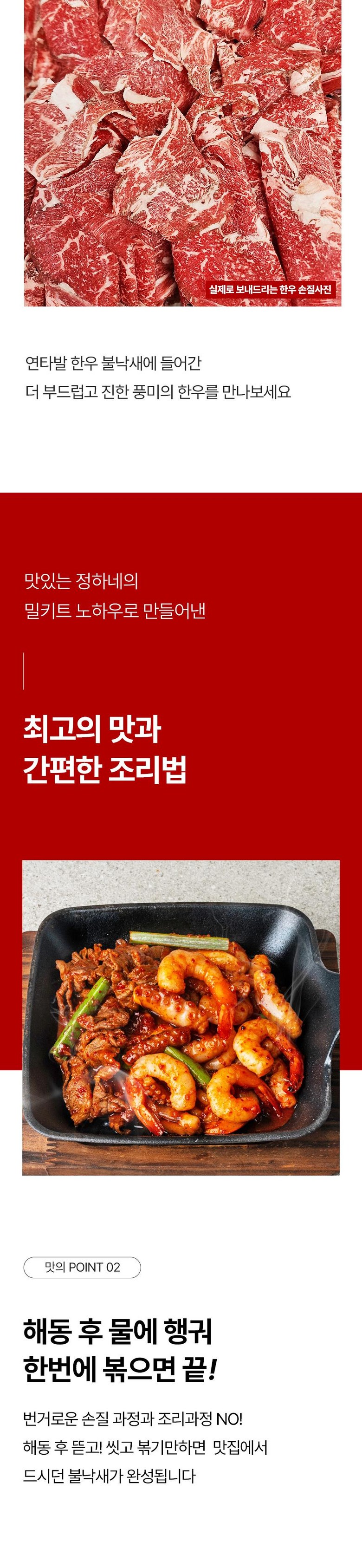| 제품명 | 연타발 한우 불낙새 | 식품의 유형 | 간편조리세트( 가열 후 섭취 냉동식품 ) |