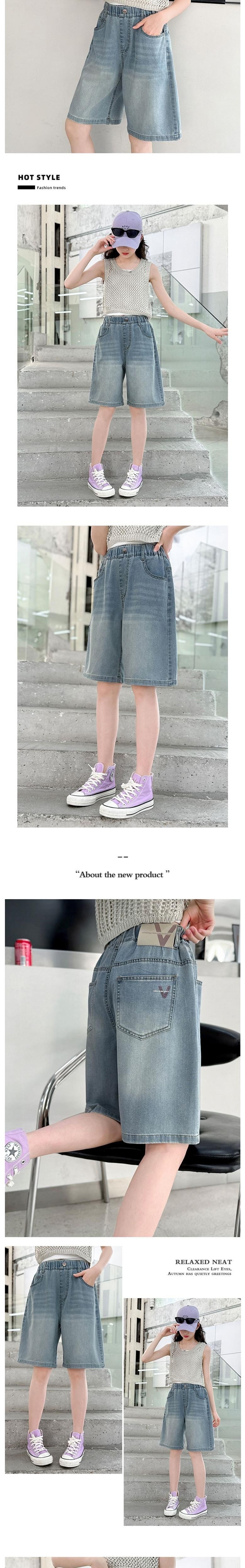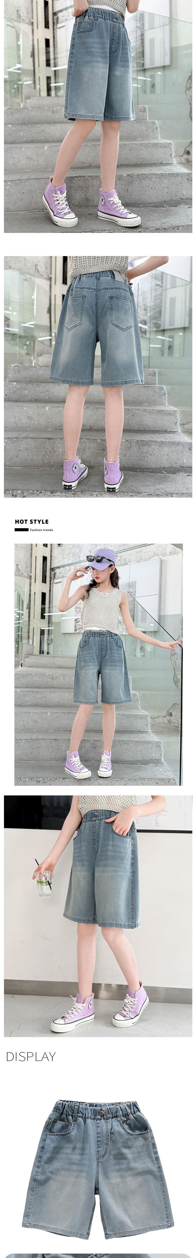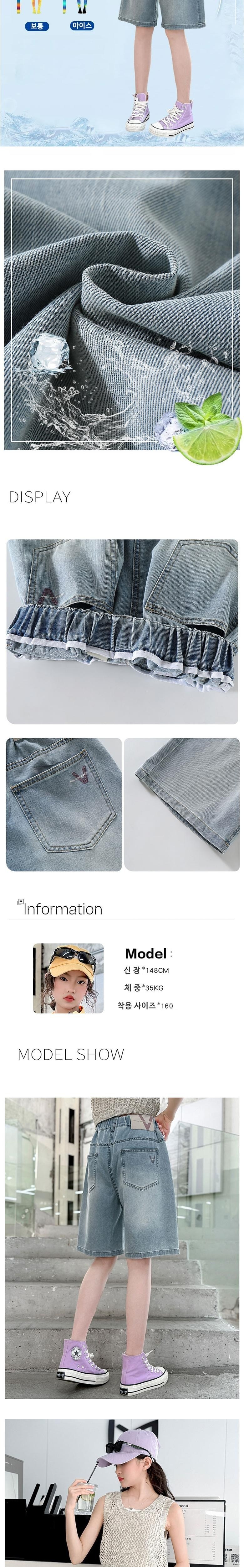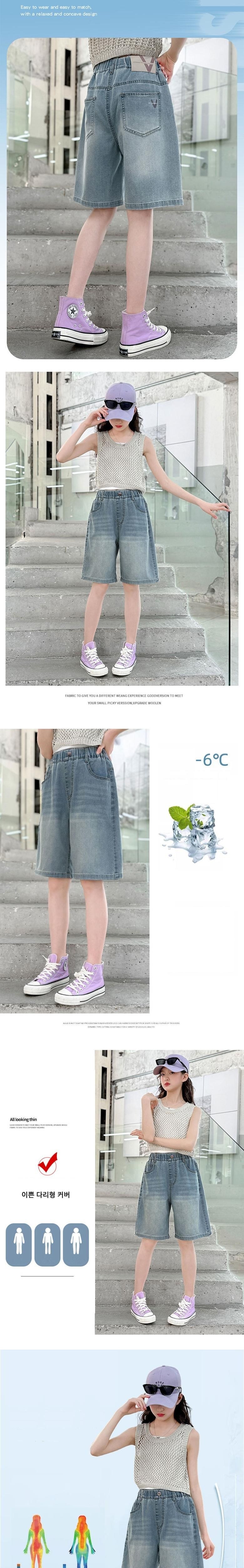 키즈목마 여름 여아 아이스 소재 5부 데님 밴딩 팬츠 초등여아 주니어 쿨링 청 반바지 657