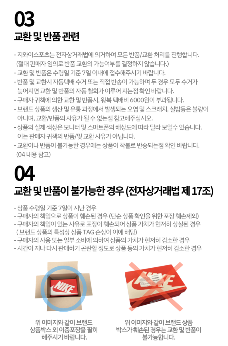 - ㆍ교환/반품에 관한 일반적인 사항은 판매자가 제시사항보다 관계법령이 우선합니다.