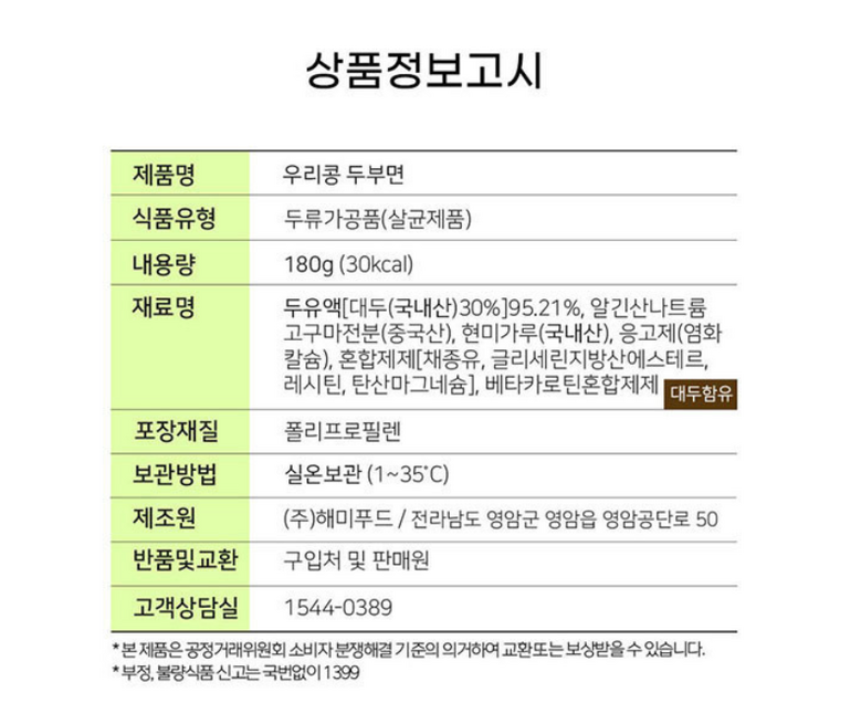| 생산자 및 소재지 | 상품 상세페이지 참조 | 제조연월일, 소비기한 또는 품질유지기한 | 상품 상세페이지 참조 |