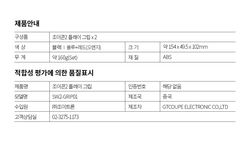 | 품명 및 모델명 | 플레이 그립 | 인증/허가 사항 | 해당없음 |
