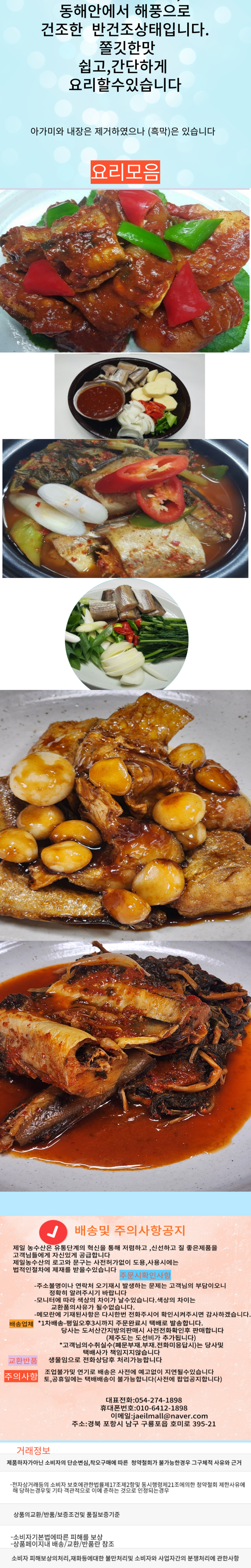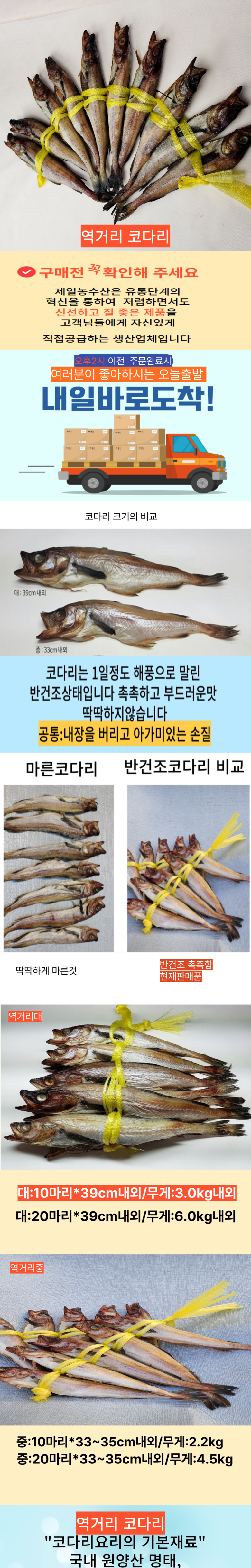 | 품목 또는 명칭 | 반건조 역거리코다리 | 포장단위별 내용물의 용량(중량),수량,크기 | 상품 상세페이지 참조 |