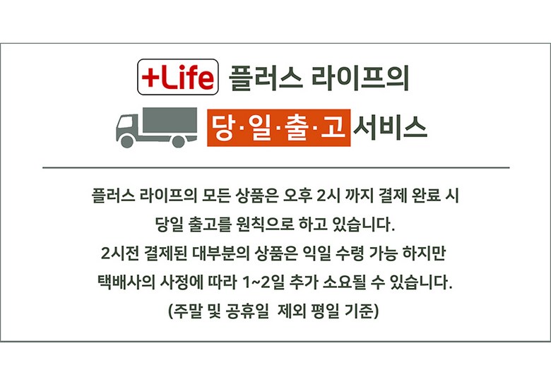 | 배송기간 | ㆍ도서산간 지역 등은 배송에 3-5일이 더 소요될 수 있습니다. - 천재지변, 물량 수급 변동 등 예외적인 사유 발생 시, 다소 지연될 수 있는 점 양해 부탁드립니다. | ||