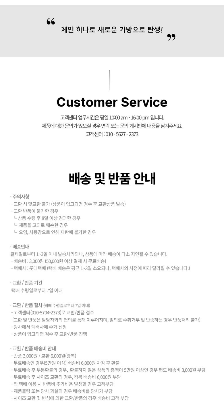 - ㆍ모니터 해상도의 차이로 인해 색상이나 이미지가 실제와 달라, 고객이 단순 변심으로 교환/반품을 무료로 요청하는 경우