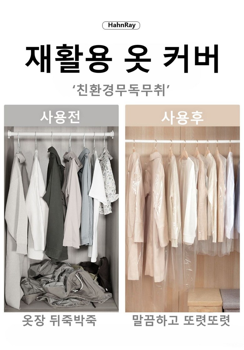 | 품명 및 모델명 | HahnRay<40매>먼지방지 비닐 투명옷커버,60*90cm | 인증/허가 사항 | 상품 상세페이지 참조 |