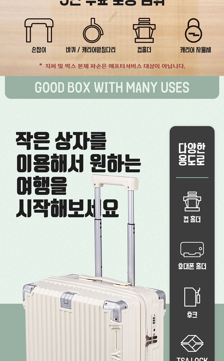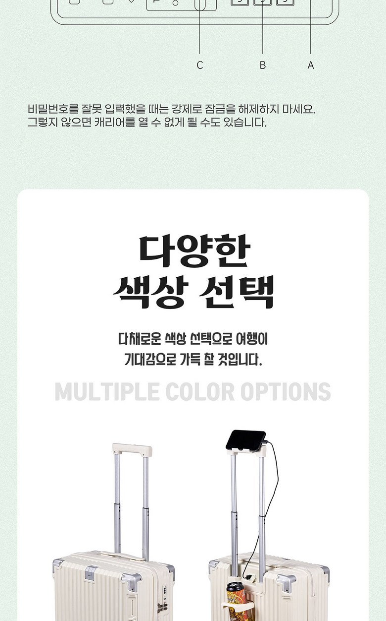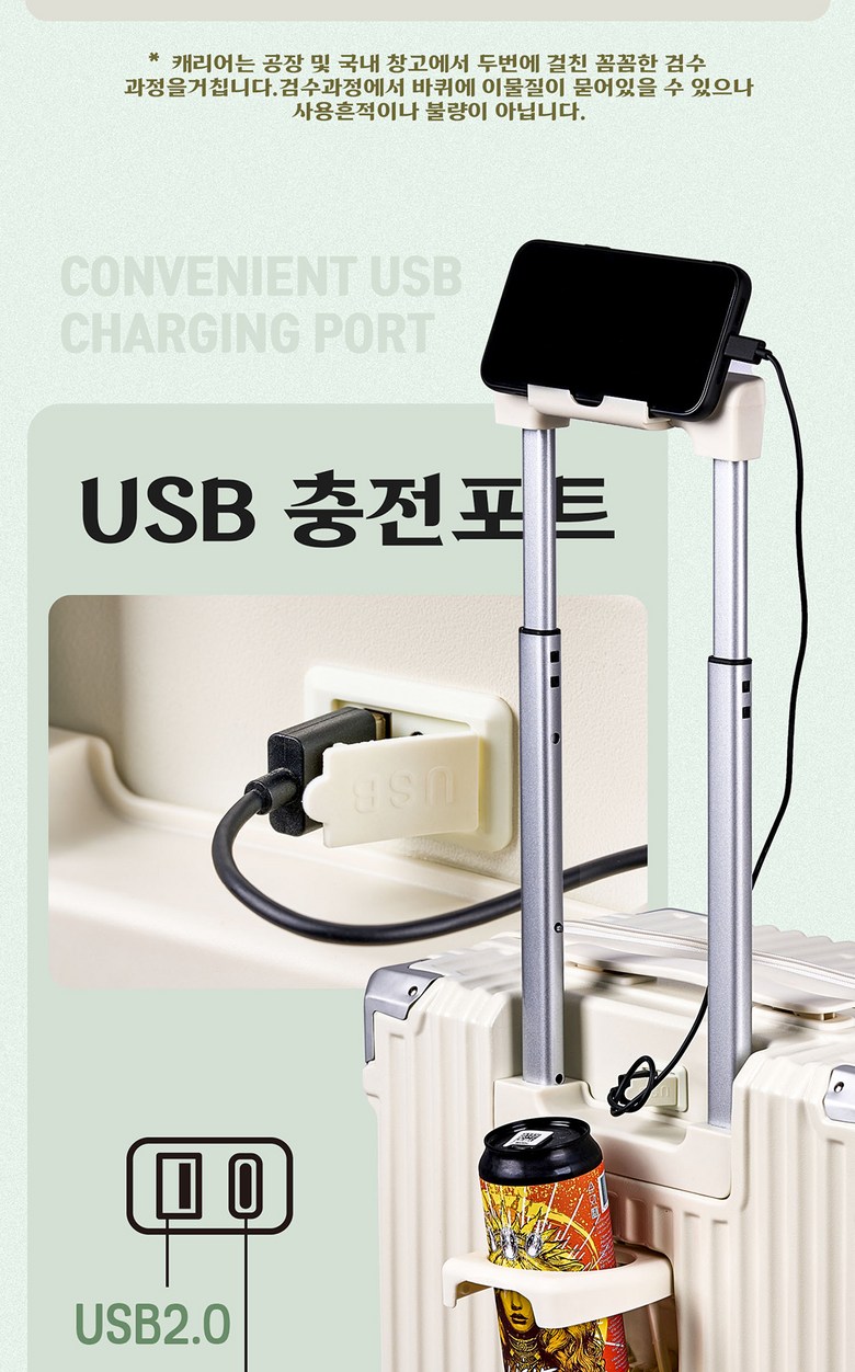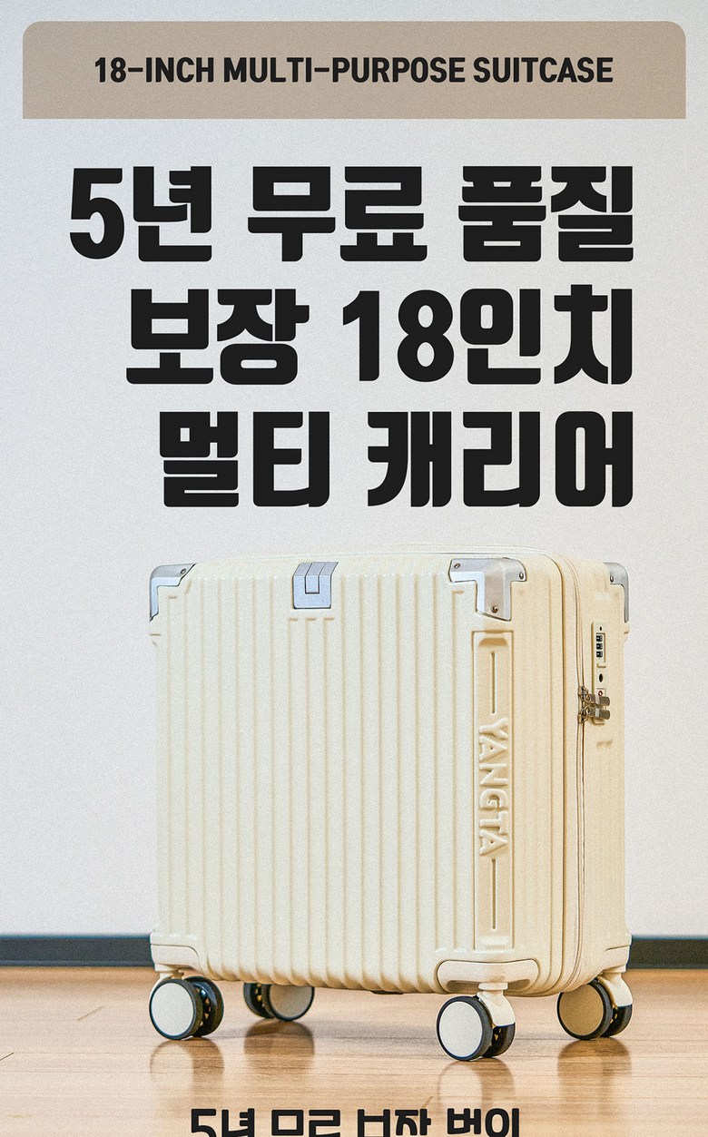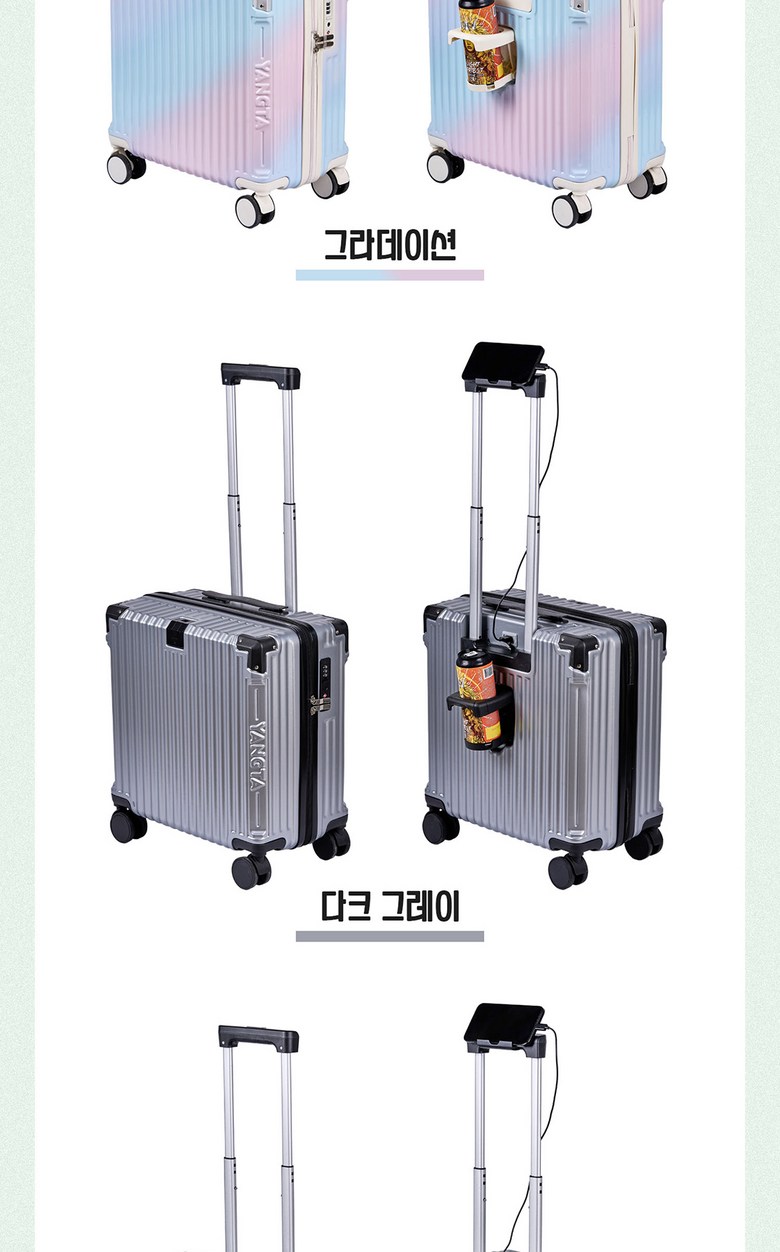 | 품명 및 모델명 | YANGTA [5년무상AS] TSA잠금 튼튼한 여행용 캐리어 기내용 미니 18인치 USB 충전포트 핸드폰 거치대 컵홀더 | 인증/허가 사항 | 상품 상세페이지 참조 |