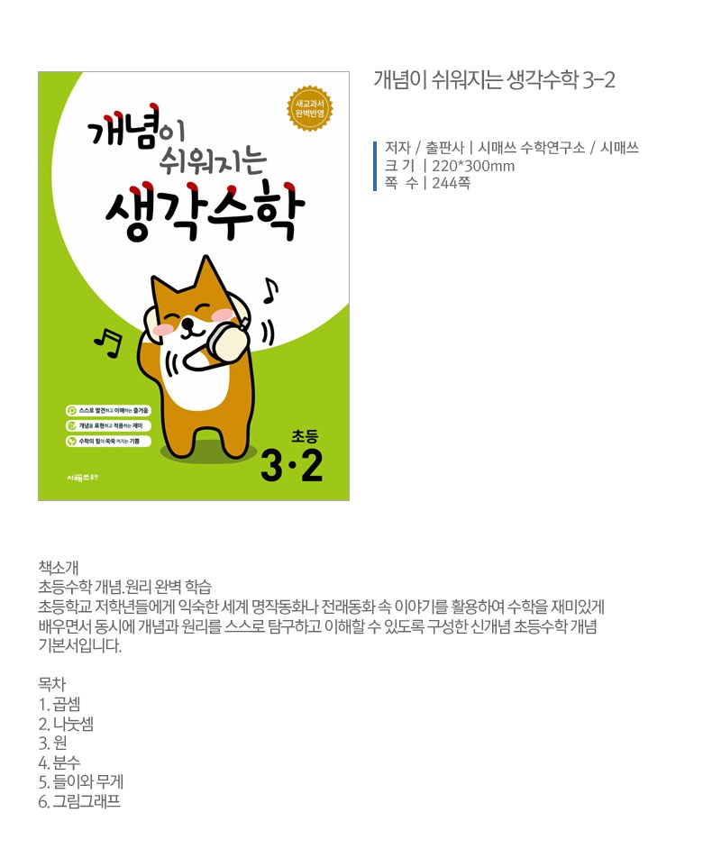 | 품명 및 모델명 | [시매쓰] 개념이 쉬워지는 생각수학 초등 3-2 (2025년) | KC 인증정보 | 유/KC 마크 |
