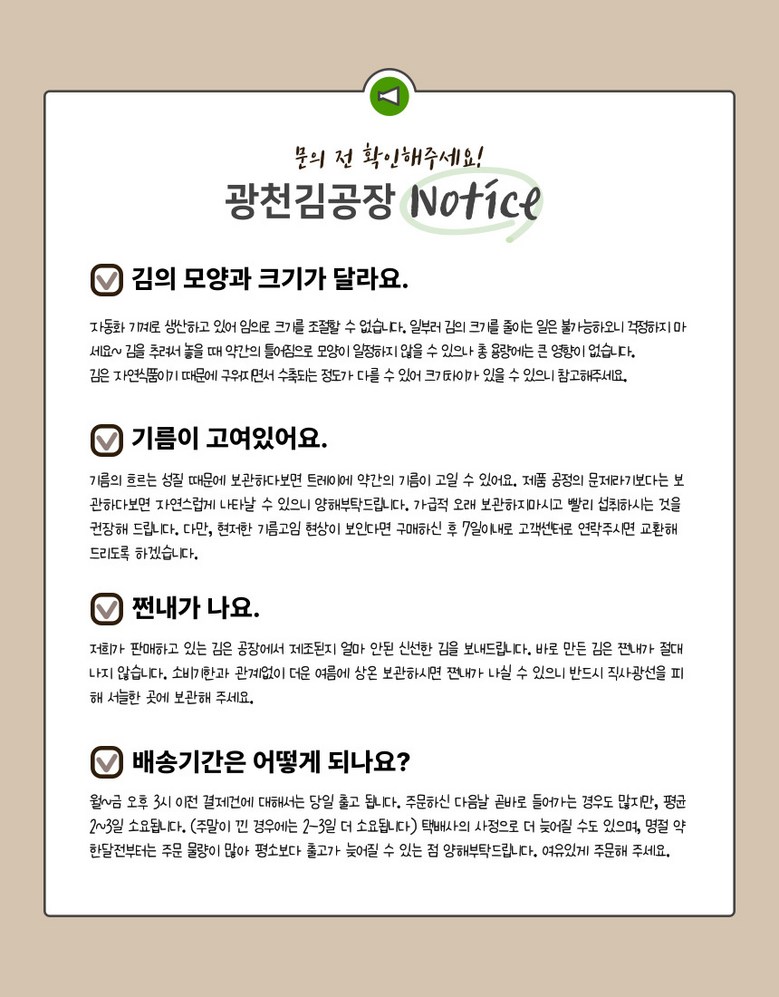 상호/대표자 | 광천김공장 / 이경원 | 사업장 소재지 | 충청남도 보령시 주교면 관창공단길 266-33 열린수산 |