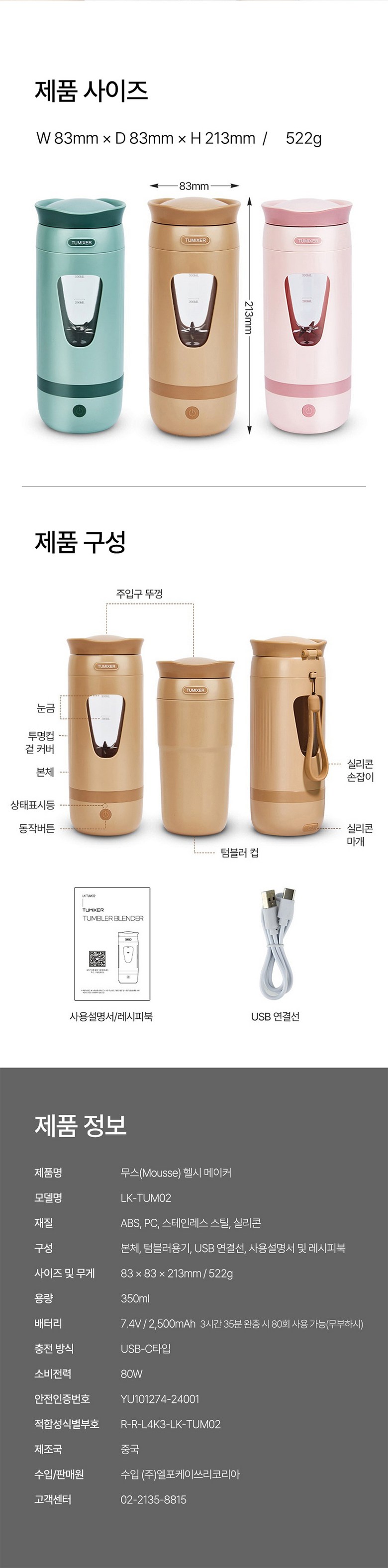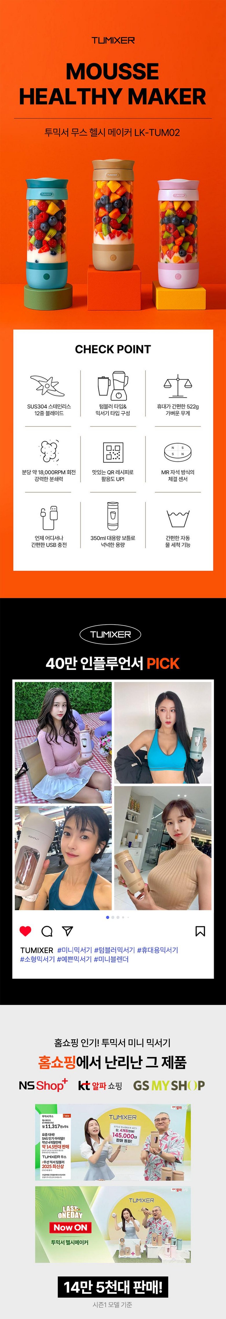 [투믹서] 휴대용 텀블러 믹서기 무스 헬시메이커 LK-TUM02