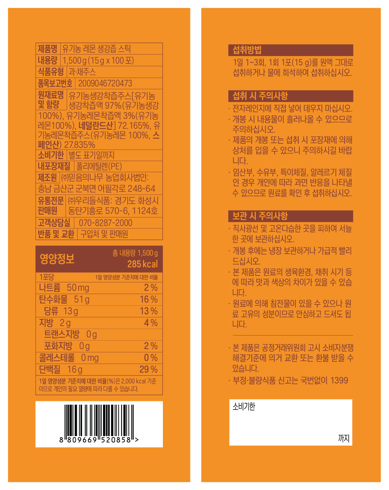 | 생산자 및 소재지 | 컨텐츠 참조 | 제조연월일, 소비기한 또는 품질유지기한 | 소비기한(또는 유통기한) : 2026년 11월 20일 이거나 그 이후인 상품 제조년월일 : 2024년 11월 21일 이후인 제조상품 |