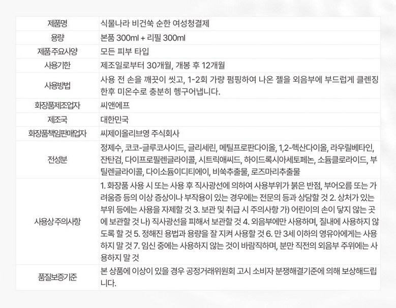 | 사용기한 또는 개봉 후 사용기간 | 상품 상세페이지 참조 | 사용방법 | 상품 상세페이지 참조 |