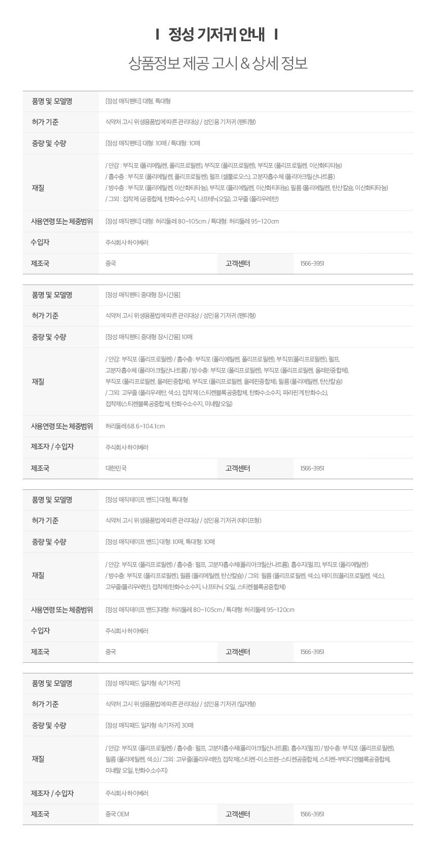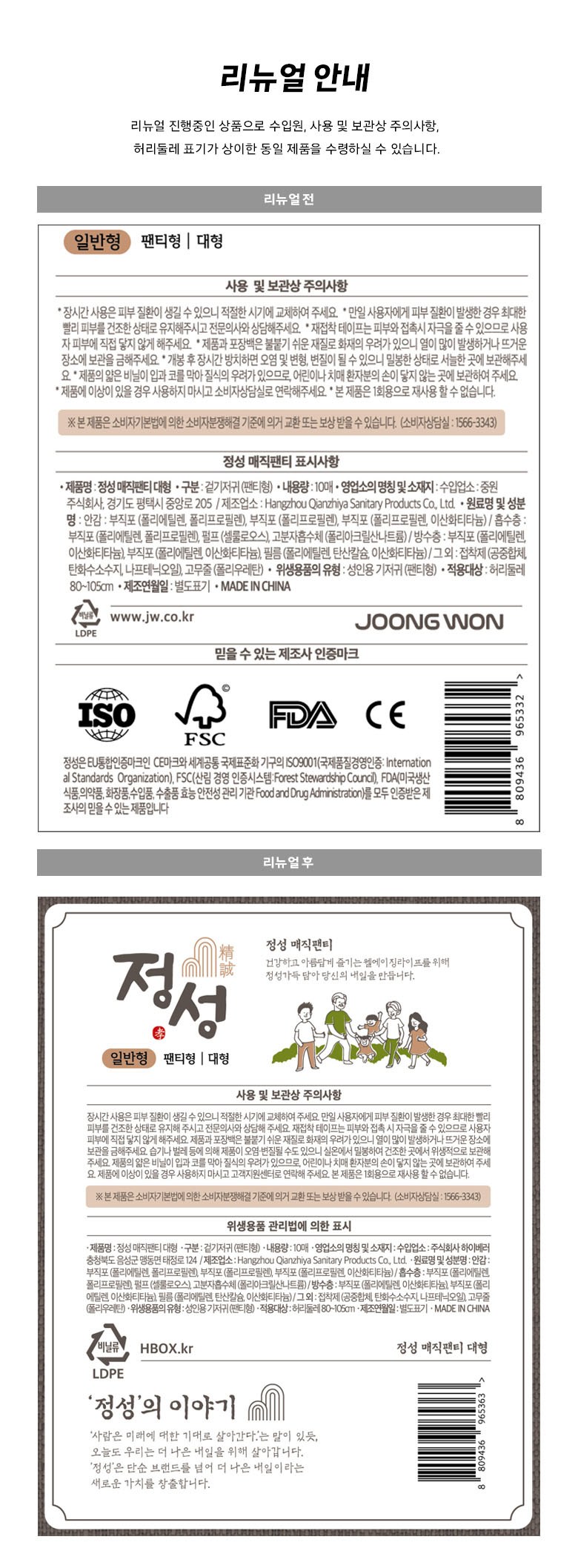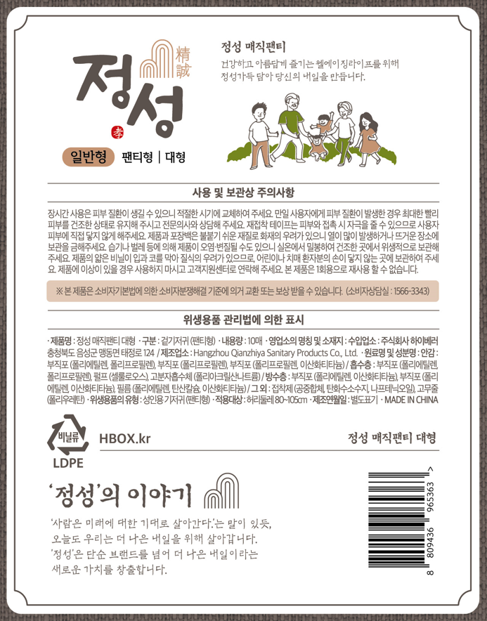 | 품명 및 모델명 | 정성 매직팬티 대형 | 인증/허가 사항 | 위생용품 |
