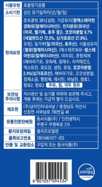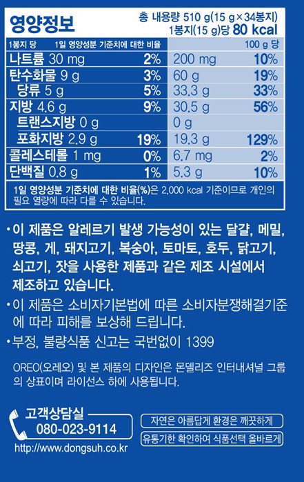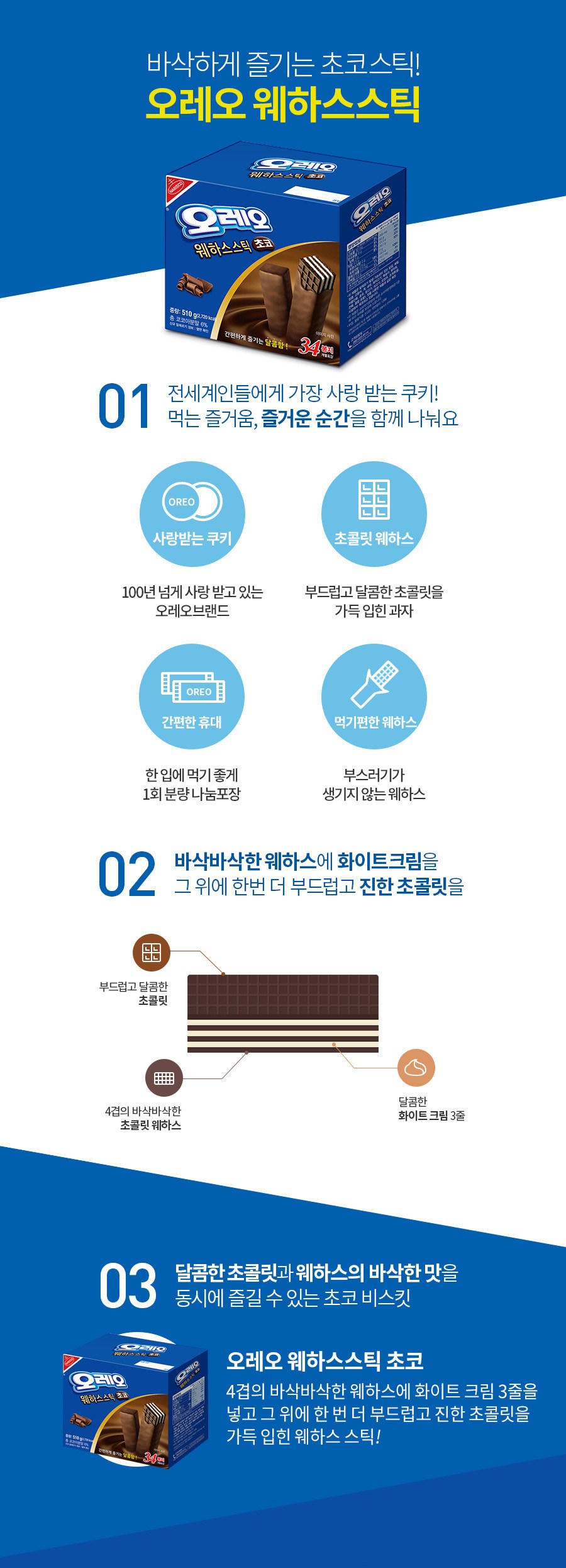 | 제품명 | 오레오 웨하스스틱 초코 | 식품의 유형 | 컨텐츠 참조 |