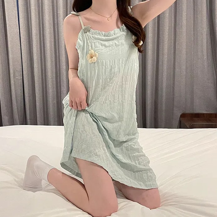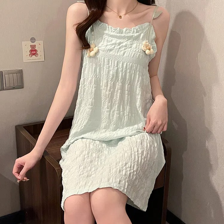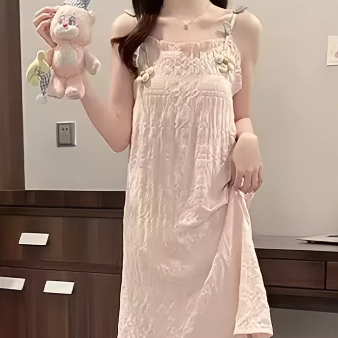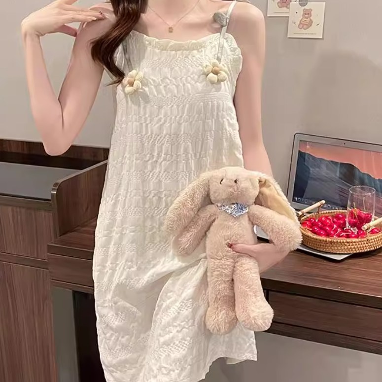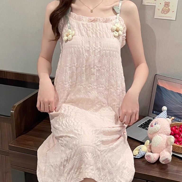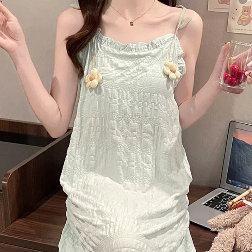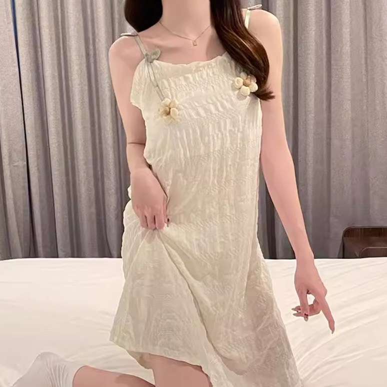 투니스 여성 입체 플라워 숏 나시 슬립 원피스 잠옷 가슴 패드 포함