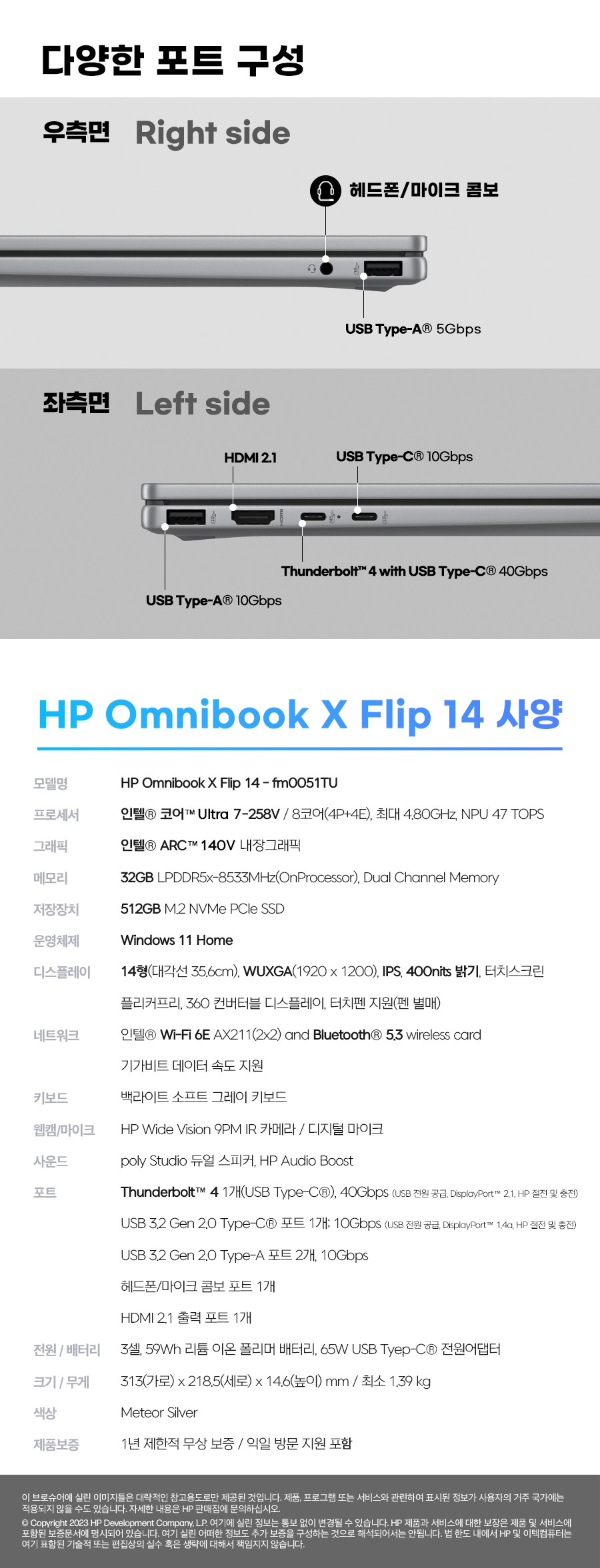 | 품명 및 모델명 | 노트북 / Omnibook X Flip NGAI 14-fm0051TU (TPN-W164) | KC 인증정보 | XU100279-25080, R-R-hpk-TPN-W164 |