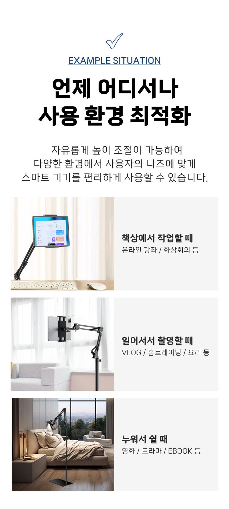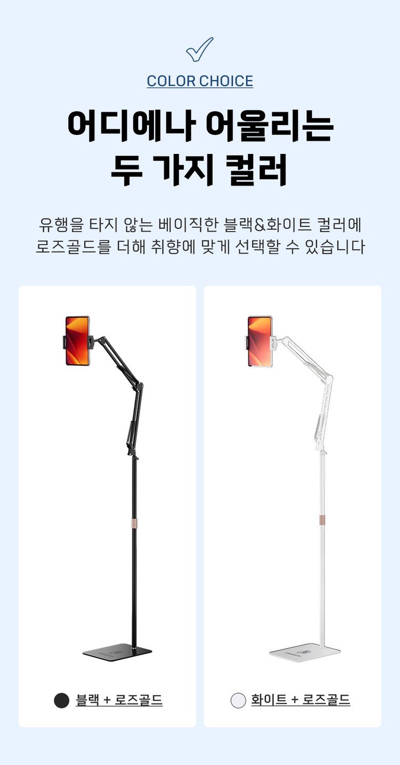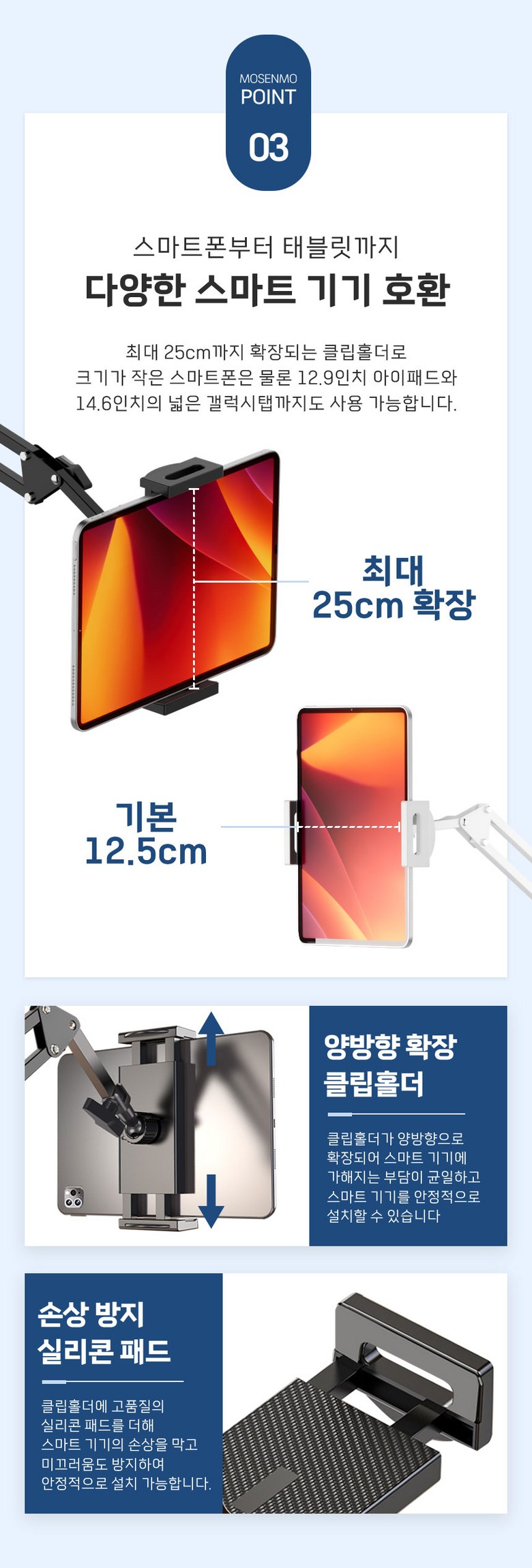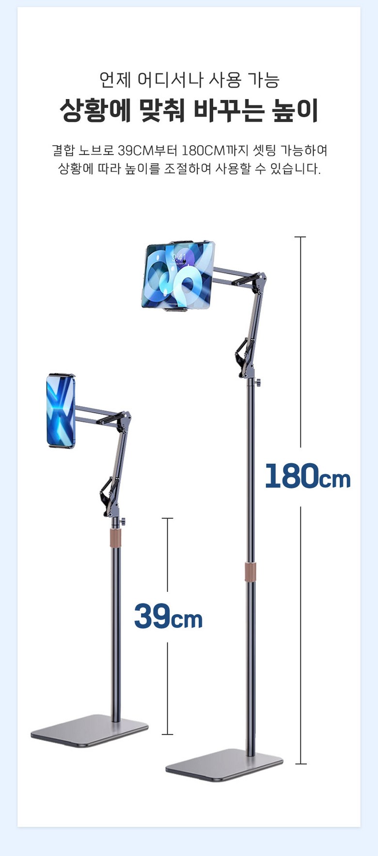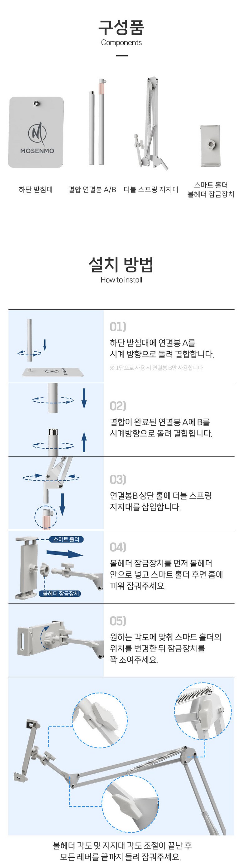 | 품명 및 모델명 | 모센모 180cm 포인트 높이 조절 스마트 패드&스마트폰 스탠드형 더블 스프링 자바라 거치대, MOS-JA1800S(무광 블랙, 무광 화이트) | KC 인증정보 | 해당없음 |